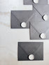 Wax seal stickers can be imprinted with your monogram, an icon, an initial, or a custom sketch.