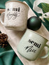 ceramic mug with marbled pattern and black printed Naughty or Nice text.